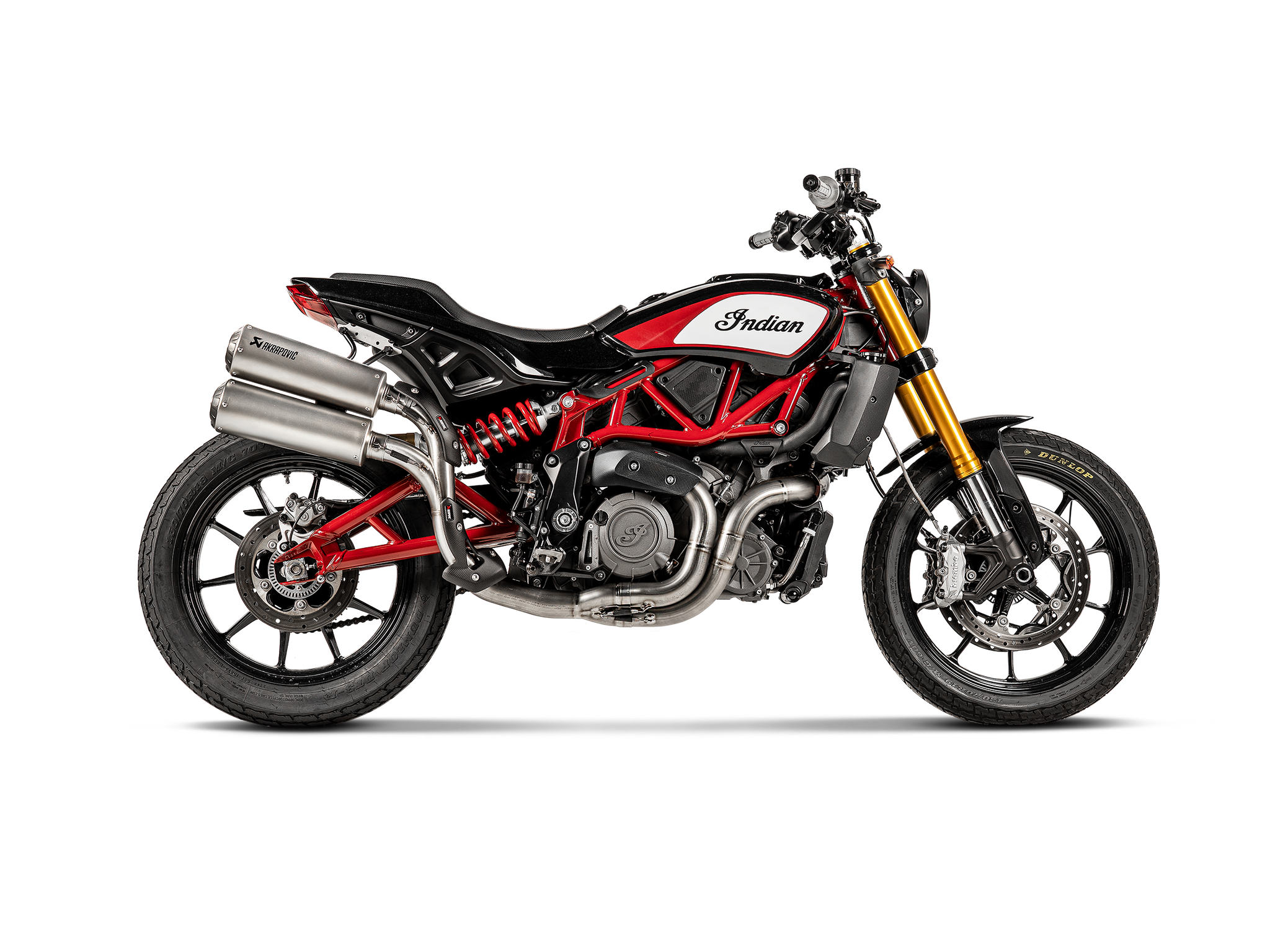 Offers an upgrade to a full system when used with either the stock muffler or Akrapovic low and high mount exhaust systems that come as standard or original accessory by Indian Motorcycles, Let your bike stand out with more power, a beautiful design and the unique Akrapovic sound, Let your bike stand out with more power, a beautiful design, and the unique Akrapovic sound, 2-into-1 titanium header is a high performance upgrade which replaces all primary exhaust components, except for the muffler, Stock heat shield or optional carbon heat shield can be used, Optional stainless steel link pipe takes the FTR1200 to a higher performance level by providing more power and torque (for use with stock head pipes), Header and link pipe are both designed to fit with either the stock muffler or Akrapovic low mount slip-on and Akrapovic high mount slip-on that come as standard or original accessory by Indian Motorcycles, Optional carbon fiber heat shield is designed to replace the stock heat shield and can be used on Akrapovic or stock headers