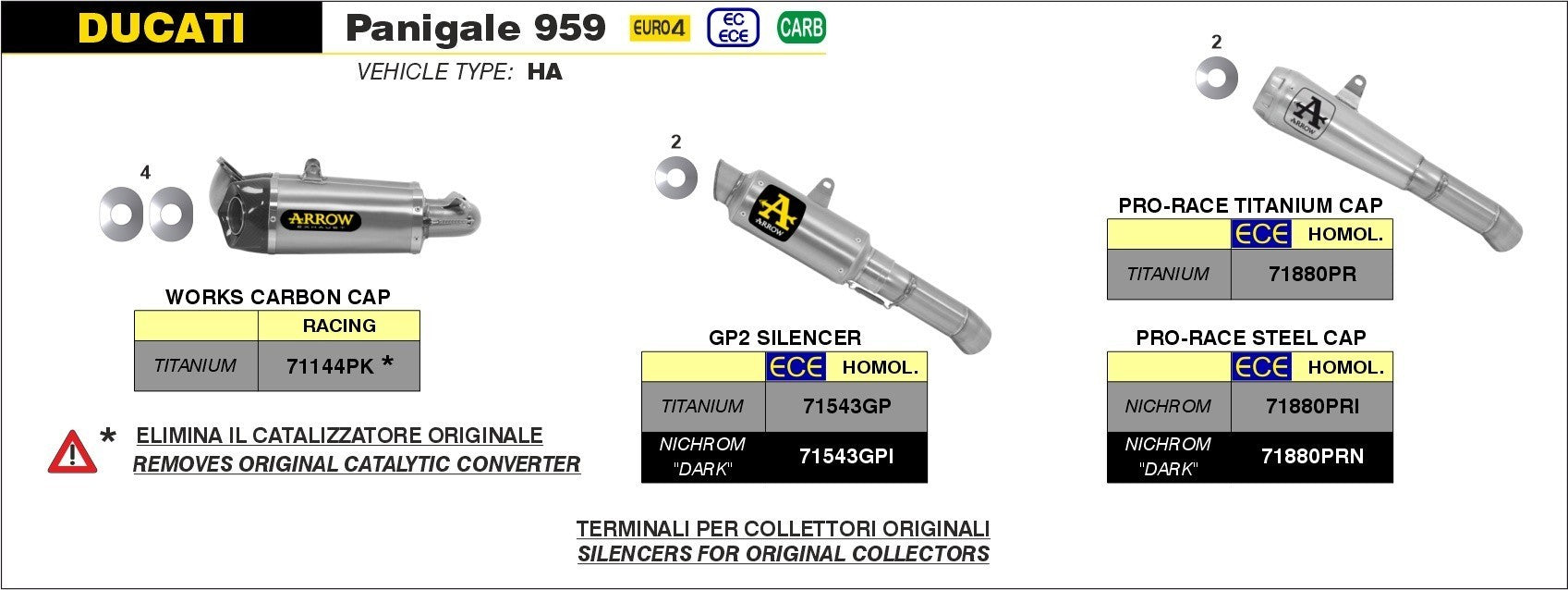 Arrow Exhaust Works Racing Silencers for 2016-2019 Ducati Panigale 959 - Unleash Ultimate Performance Arrow Exhaust Works Racing Silencers are designed to maximize the potential of your...