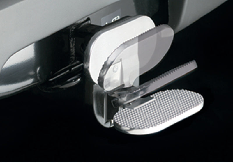 Provides easy access to back of vehicle. No drill installation. Fits any 2 inch receiver hitch. Constructed of durable die-cast aluminum. Slip resistant stepping surface.