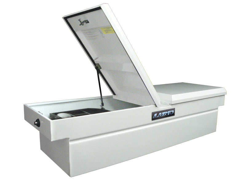 Commercial PRO HD Steel Cross Bed Boxes Constructed with heavy-duty 16-gauge steel reinforced by expert craftsman hand TIG welded seams; Commercial PRO HD boxes keep equipment safe and dry. The reinforced and insulated high dome lid featuring an ultra-tight weatherproof bulb seal, adjustable J-bolt striker mount, and heavy-duty aluminum piano-style hinge bolts lid to box body for unequaled strength and durability - even in the coldest weather. Steel: • Constructed with heavy-duty 16-gauge steel • Secure, 3-finger lockable double latch, paddle handles • Steel hinges for long life in all weather conditions • No-weld installation bolts lid onto box body for heavy rugged long life • Full 90+??+?-? automatic self-rising lid for easy access • Rigid foam filled lid for increased box strength • Long lasting heavy duty piano style hinge design • Secure cargo with two stainless steel D-ring tie downs • Protective linkage cover keeps lock and contents safe • Commercial D-shaped weatherproof bulb seals keep moisture out • No-weld installation bolts lid onto box body for heavy rugged long life • Sectioned, movable, and lockable steel tray organizes tools • Side pocket organizers • Single lid and gull-wing styles available • Includes no-drill mounting hardware and non-skid mat • White or black electro-statically applied powder coated finishes for maximum corrosion and abrasion resistance