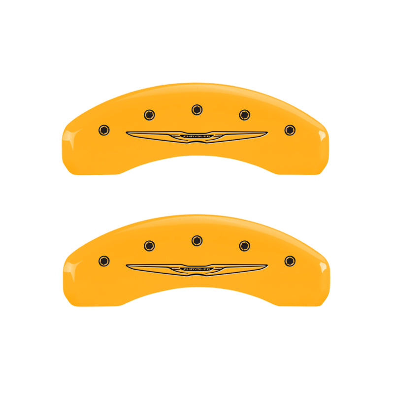 MGP 4 Caliper Covers Engraved Front & Rear Style 2/Chrysler Wing Yellow finish black ch