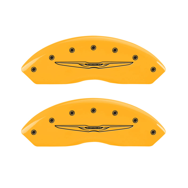MGP Caliper Covers are a car accessory designed and manufactured specifically for your Chrysler vehicle to cover up and hide those ugly brake calipers. These aluminum caliper covers are finished with a high-quality powder coat. These yellow caliper covers will enhance your wheel appearance and curbside appeal. MGP Brake Caliper Covers are tested for safe fitment and are licensed by major manufacturers.