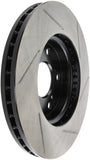 StopTech Slotted Sport Rotors are 1-piece direct replacement brake discs for factory brake systems and stock calipers that look great behind your wheels – and offer significantly improved braking performance. The unique slotting aids with heat and brake dust dispersal, prevents glazing of the pads, adds bite and improves wet and dry braking performance. Built to last, the black e-coating provides protection from corrosion and the high carbon metallurgy (in most applications) offers quieter operation, better crack resistance and increased performance.