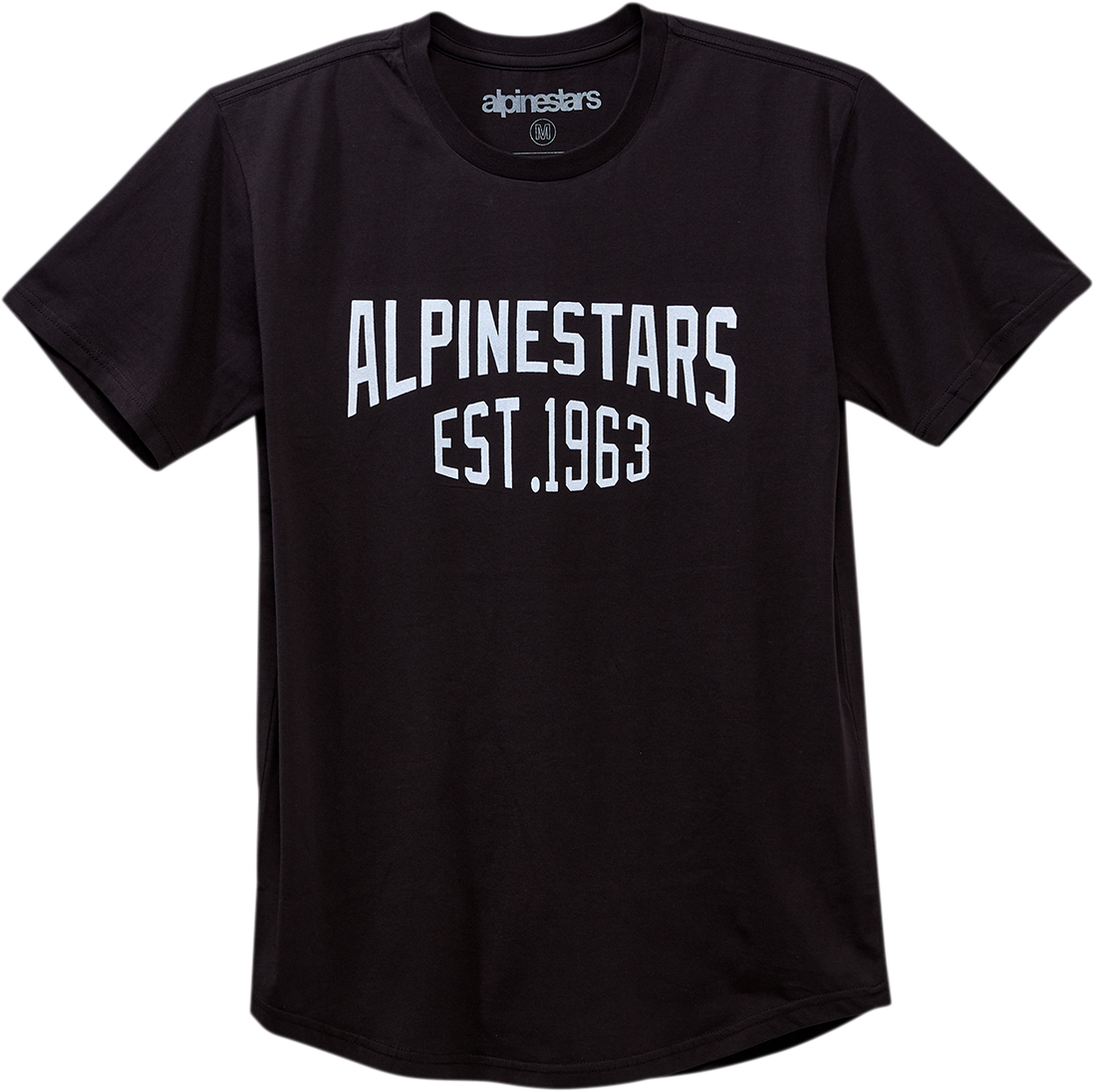 Arched Premium T-Shirt - Black - Large Alpinestars word established graphic flock print, Premium curved hem, Internal Alpinestars neck print