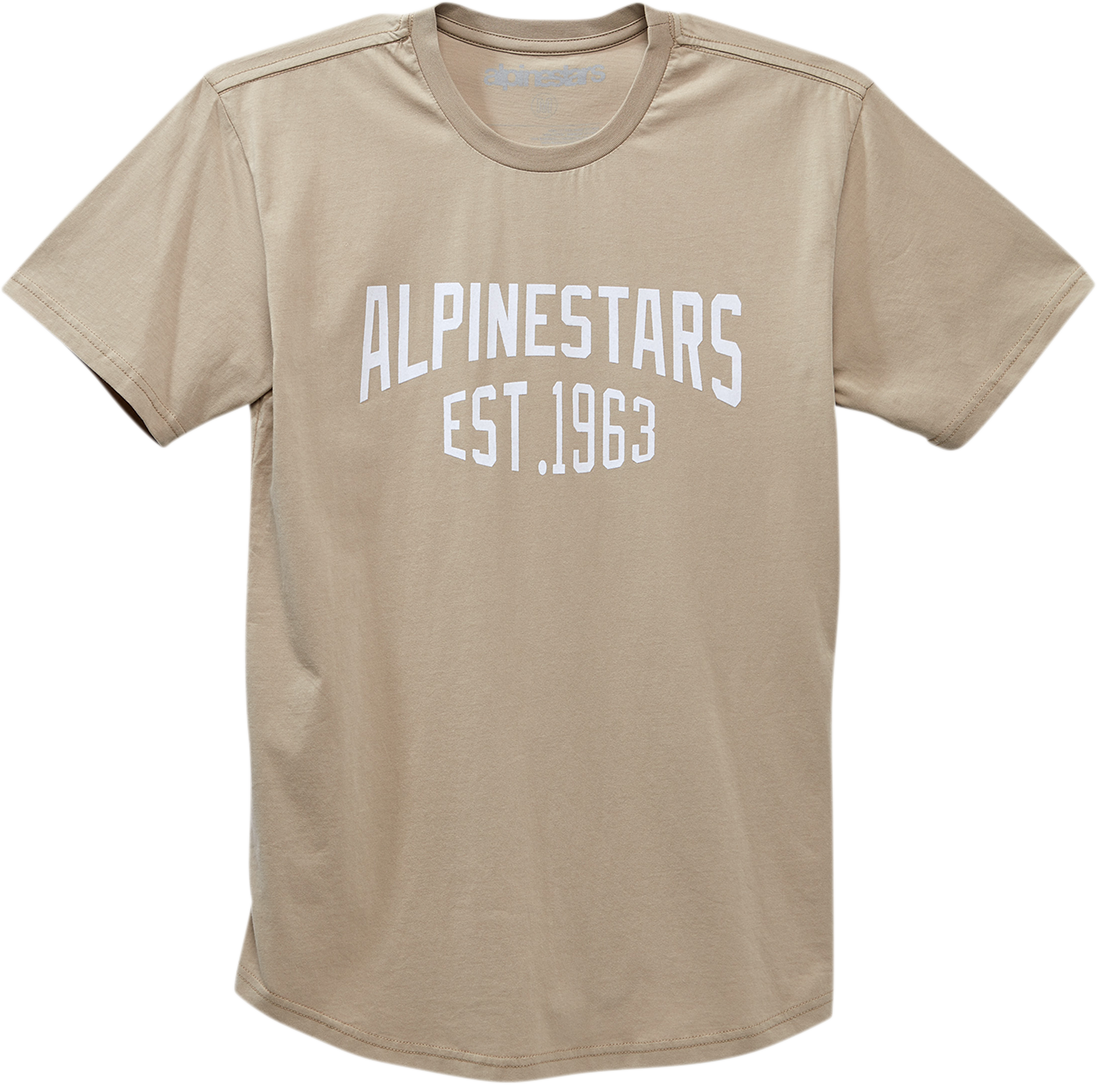 Arched Premium T-Shirt - Khaki - XL Alpinestars word established graphic flock print, Premium curved hem, Internal Alpinestars neck print