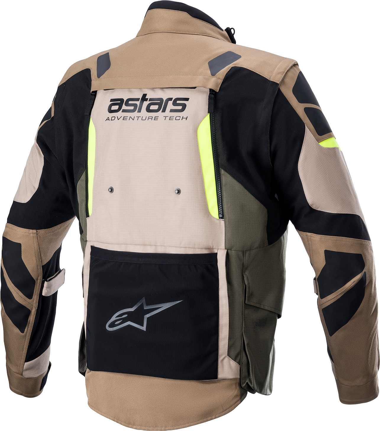 Fully foldable full mesh front and back ventilation panel bridges efficiently distribute airflow, while the removable sleeve shell allows the jacket to be adapted to suit the weather conditions, The packable, waterproof and breathable Drystar® rain jacket delivers guaranteed waterproofing and breathability without excessive material bulk, thus preventing any waterlogging, and can be worn inside the jacket or over the jacket for the ultimate in climate control, and can also be worn as a standalone jacket. The jacket can be stored in the back pocket or in the integrated pocket, Featuring an engineered fit to deliver the highest level of active protection, this jacket is Tech-Air® ready and can accommodate the Tech-Air® 5 Airbag System, for complete upper body protection, Nucleon Flex Pro armor delivers optimal protection against impacts, Left and right removable sleeves are identified with a label for ease of use when connecting them back to the jacket, Multi-adjustment arms for a tailored fit, Mesh back pocket for easy, practical and quick use, Stretch wrist for an optimized fit, Soft collar construction for enhanced rider comfort, Removable chest protector pocket for safe storage of valuables, Hand pockets, lower pocket, front pocket and side cargo pockets for real-world practicality, Integrated pocket allows the Drystar® liner to be folded back on itself, PU shoulder reinforcement for additional strength and durability, Internal waist belt on main shell for an optimized fit, Fluo yellow color inserts on Drystar® liner