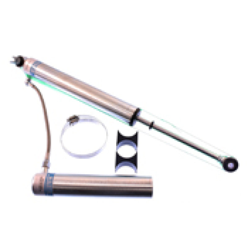 Bilstein B8 5160 remote reservoir shock absorbers are designed as a direct fit solution for lifted trucks and SUV’s. The remote reservoir will offer increased cooling capacity and wheel travel to optimize overall performance compared to a traditional shock absorber. These shock absorbers feature a monotube design for consistent fade free performance and utilize velocity sensitive digressive valve settings which are tuned for each specific application. Each shock absorber is fitted with a unique 360 degree swivel banjo hose fitting, providing a clean, low profile installation. B8 5160 remote reservoir shock absorbers will increase overall durability of your vehicle allowing you to conquer the harshest of off-road environments.