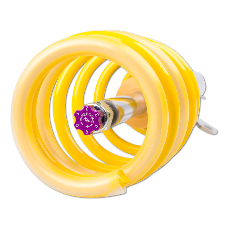 Unparalleled street performance bred from motorsports heritage, the patented KW-valve technology -or the separate Adjustment -f rebound and compression damping, allows you to individually adapt the vehicle-specific base setup.
