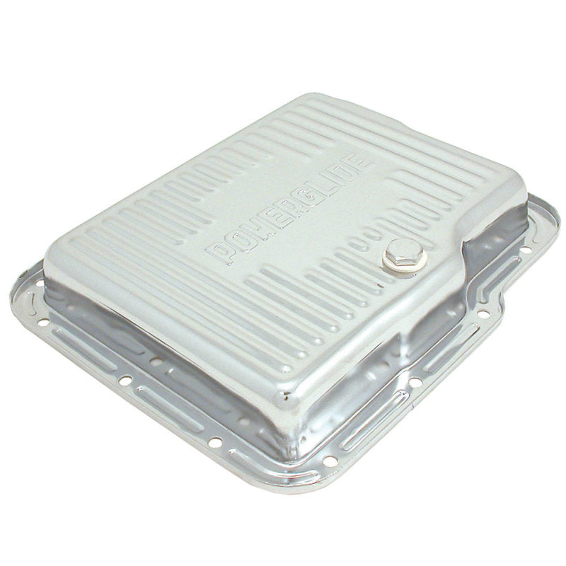 Spectre s Transmission Pans provide a show quality replacement for a wide variety of transmissions; and include a drain plug to allow convenient fluid changes. This stock capacity pan was designed to fit GM Powerglide transmissions.