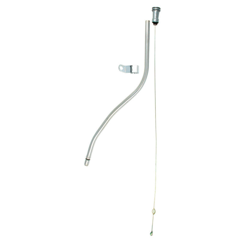 Spectre's Transmission Dipstick was designed for the turbo 350 and 400 transmission. This dipstick features billet steel, an O-ring grip design handle, and an adjustable mounting bracket for fast and easy installation. This product is manufactured using high quality materials and is constructed using a gold irridite stick for clear accurate fluid level readings that meet or exceed OEM specifications for form, fit, and function.
