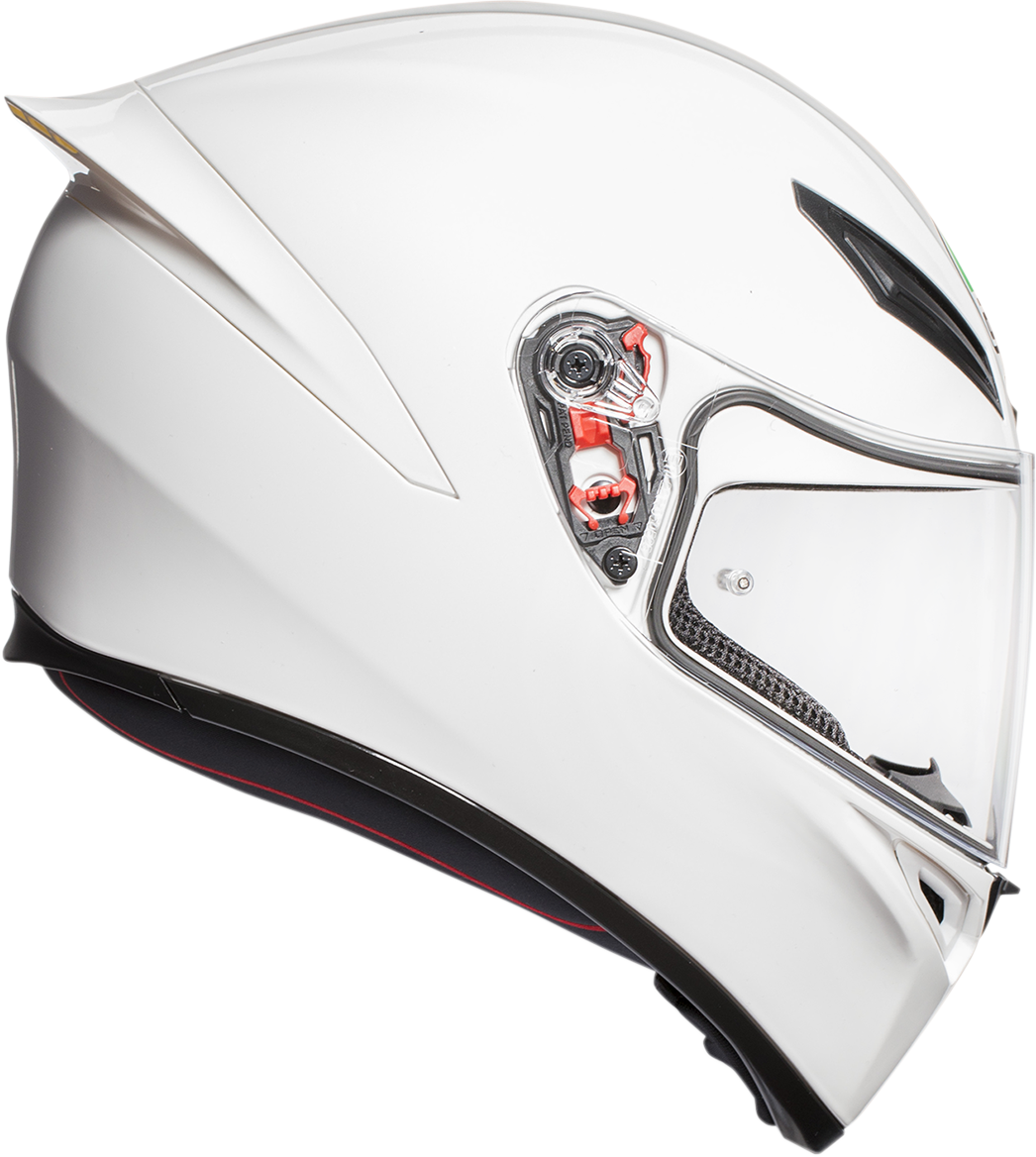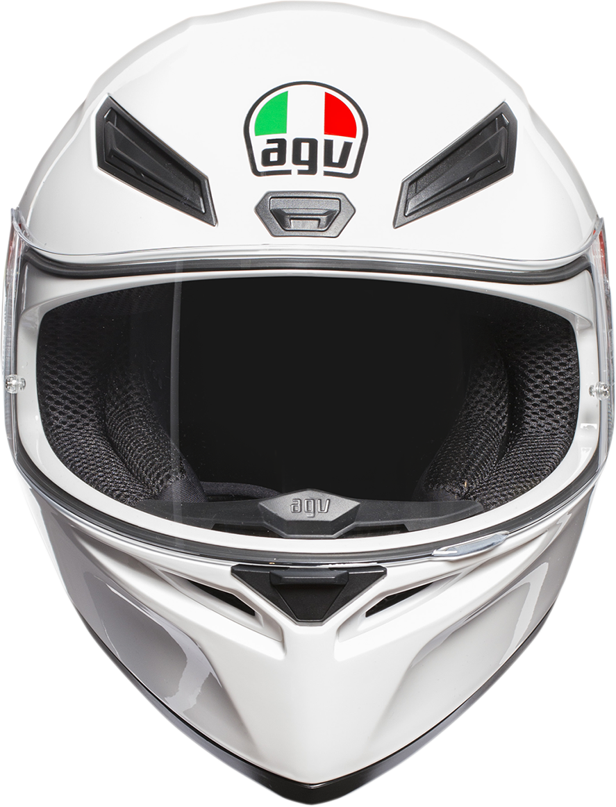 K1 is the AGV sport helmet for everyday riding challenges, Born from the AGV racing technology, ready for every road experience, Aerodynamic shape, racing-developed front air vents and wind-tunnel-tested spoiler maximize performances and give stability at higher speed, Anti-scratch visor with Pinlock® anti fog allows a wider vertical and lateral field of vision, Shell in high-resistance thermoplastic resin engineered in two, Integrated ventilation system with five large front vents and two rear extractors hollowed in the shell which direct air to the rider's head, All the air vents are adjustable, Rear extractors are integrated into the spoiler, Spoiler integrated in the shell profile is inspired by Pista GP R's Biplano and wind tunnel tested to maximize aerodynamic performance and stability, Soft and removable Dry-Comfort® fabric interiors with removable nose guard and wind protector, All parts are easily removable and washable, Fit especially designed to allow wearing glasses, Visor micro-opening system to boost airflow, Patented Extra Quick Release System visor mechanism with multiple steps, Double-D retention system, Ready for generic communication system