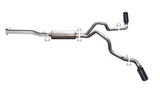 For the extremist who wants to take their truck to the next level, this Black Elite dual bolt-on Cat back system is for you. This system exists behind the rear tires at an aggressive angle with a powerful exhaust tone. Each T-304 stainless tip is offered with a premium black finish applied with Gibson's formulated process exclusive only to the Black Elite Series You will gain bold street looks with dyno tuned and tested street performance gains. For increased Performance, this exhaust system pushes the sound through our proven stainless steel Superflow Muffler giving you a vigorous deep tone. It's manufactured with high quality stainless steel tubing and backed by a limited lifetime warranty. With this perfect combination, Gibson Performance exceeds expectations with the ability to offer quality and style while being Made in the USA.