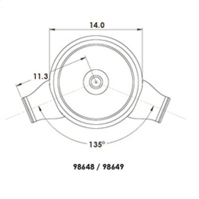 Spectre's 14 by 3 inch low profile air box comes with a chrome plated exterior finish, and our 12.6 inch by 3 inch tall Spectre HPR air filter. This air box is an enclosed housing around the air filter that is designed to help block engine heat from getting to the air filter. In addition, this housing comes with dual 4 inch inlets set at 135 degrees apart that can be run as is or by attaching air intake tubing to make your own custom air intake. This air box is designed to fit throttle body injection assemblies and carburetors with a 5-1/8 inch neck and needs a minimum clearance of 2.4 inches above the carburetor flange.