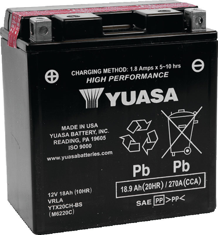 Yuasa YTX20CH-BS High Performance AGM Battery w/Bottle