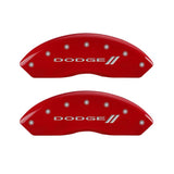 MGP 4 Caliper Covers Engraved Front & Rear With stripes/Dodge Red finish silver ch