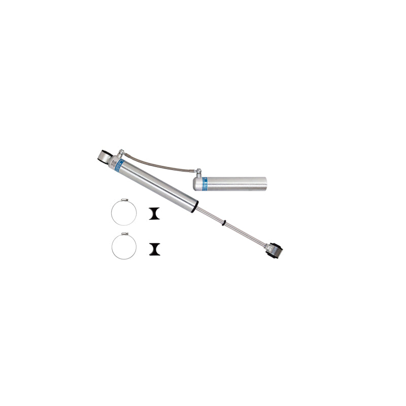 Bilstein B8 5160 remote reservoir shock absorbers are designed as a direct fit solution for lifted trucks and SUV's. The remote reservoir will offer increased cooling capacity and wheel travel to optimize overall performance compared to a traditional shock absorber. These shock absorbers feature a monotube design for consistent fade free performance and utilize velocity sensitive digressive valve settings which are tuned for each specific application. Each shock absorber is fitted with a unique 360 degree swivel banjo hose fitting, providing a clean, low profile installation. B8 5160 remote reservoir shock absorbers will increase overall durability of your vehicle allowing you to conquer the harshest of off-road environments.