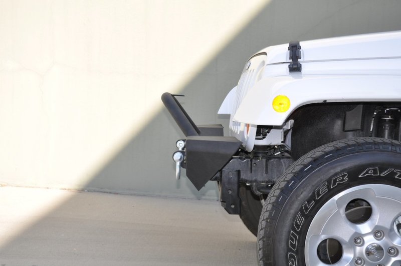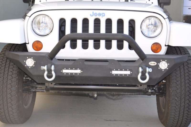 DV8 Off Road Jeep Front Bumpers are all trail tested and proven designs. 3/16 inch and 1/4 inch cold rolled steel, .120 wall tubing, high degree angles and raised corners, light tabs and solid D-ring mounts w/rings included. Built-in winch plate able to accomodate a 12,500 lbs winch. All bumpers come in textured black powdercoating. Easy installation, no modifications needed, hardware included.