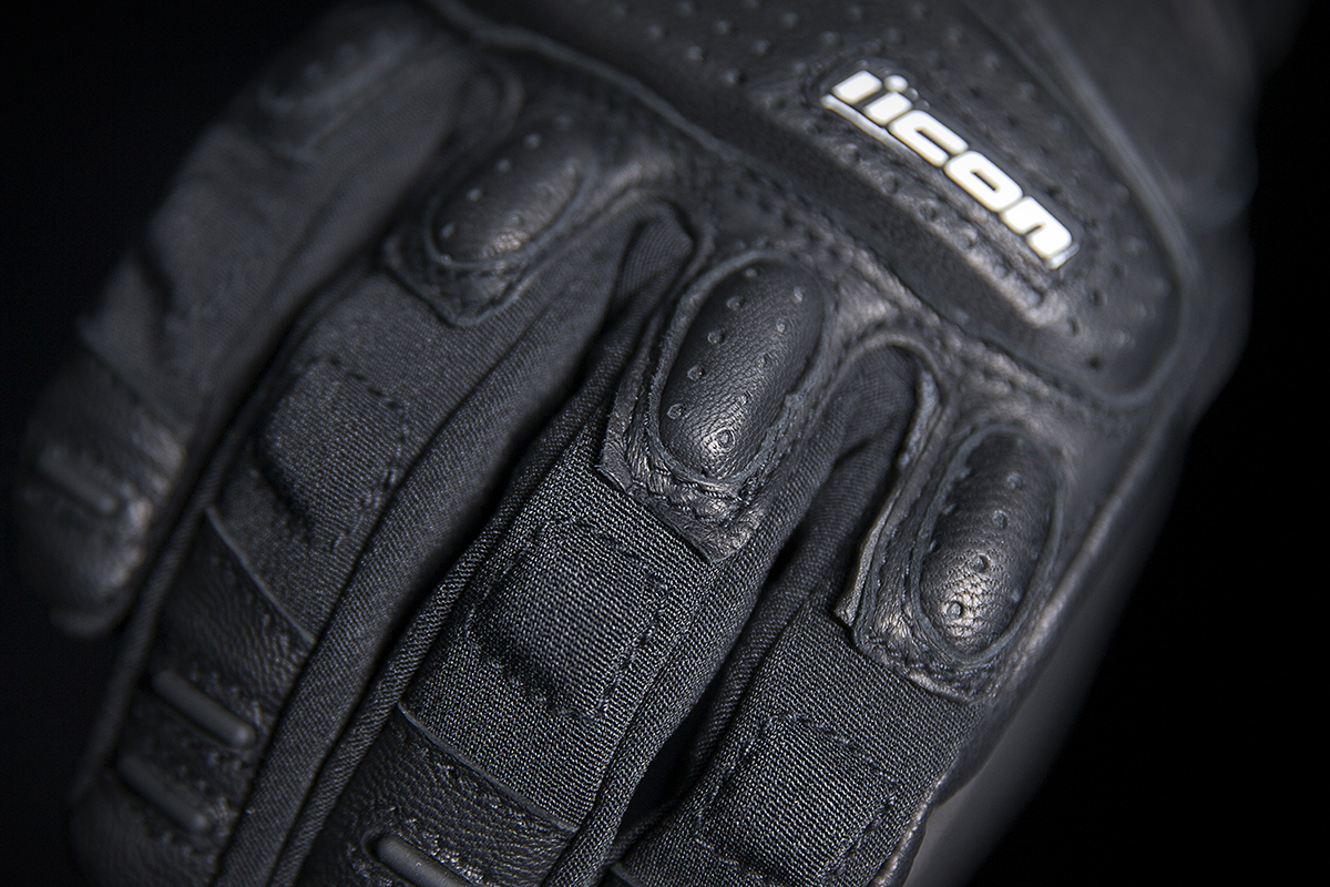 Premium abrasion-resistant Battlehide™ goatskin construction, Padded knuckles with expansion panels, Short cuff with wrist closure, Stretch Cordura® finger gussets, Rubber fingertip armor, 2-ply padded palms