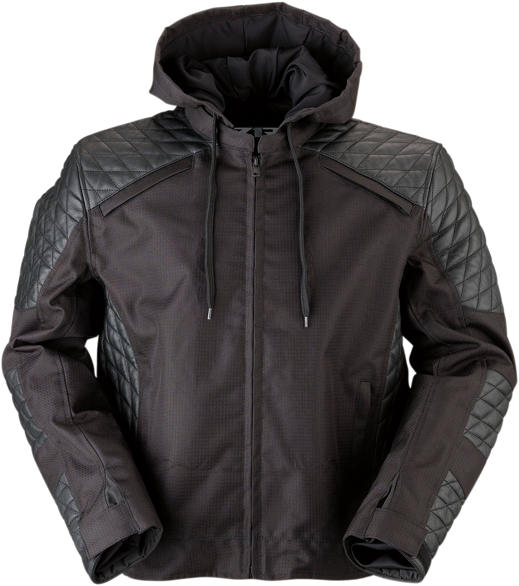 Premium 1.1-1.2mm full grain cowhide leather, Adjustable hook and loop D-ring sides; wrist closures, Two hand warmer pockets, Zip-off hood, Performance inner cuffs, Polyester mesh inner liner