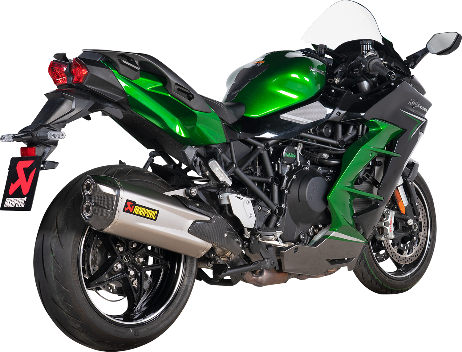 Constructed from race-inspired materials and consisting of a high-grade lightweight titanium muffler outer sleeve, a handmade carbon-fiber heat shield, and an end cap with twin exhaust ports, this product is completed with a stainless-steel link pipe, Featuring a catalytic converter to comply with Euro 5 regulations, this Slip-On Line (Titanium) weighs in at 2.2 kg lighter than the standard stock system, for a weight savings of 28.9%, It is fully compatible with the Kawasaki OEM side cases, A simple plug and play installation, with no need for remapping, the system provides a perfect throttle response, with power increased by 1.4 kW (1.9 hp) at 10,100 rpm and a torque elevation of 1.8 Nm at 5,500 rpm when tested on the in-house dyno against a Ninja H2 SX with a standard stock exhaust