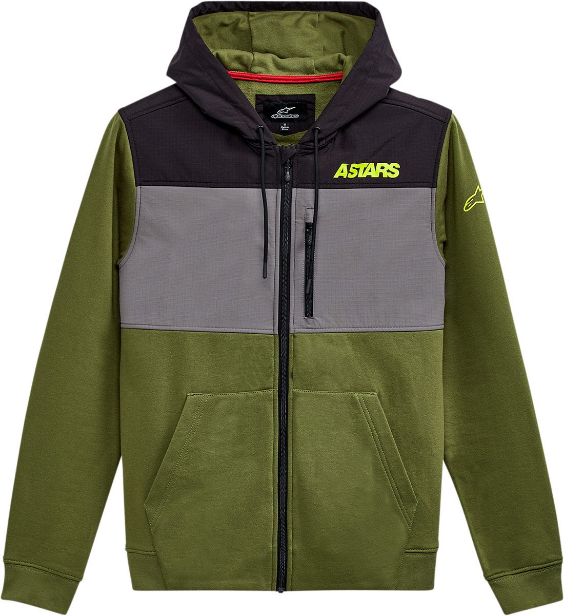Elevate Jacket - Olive - Large Hooded mix material fleece jacket, Ripstop overlay front yoke panel and hood, fleece body, Coil zipper at front, zip...