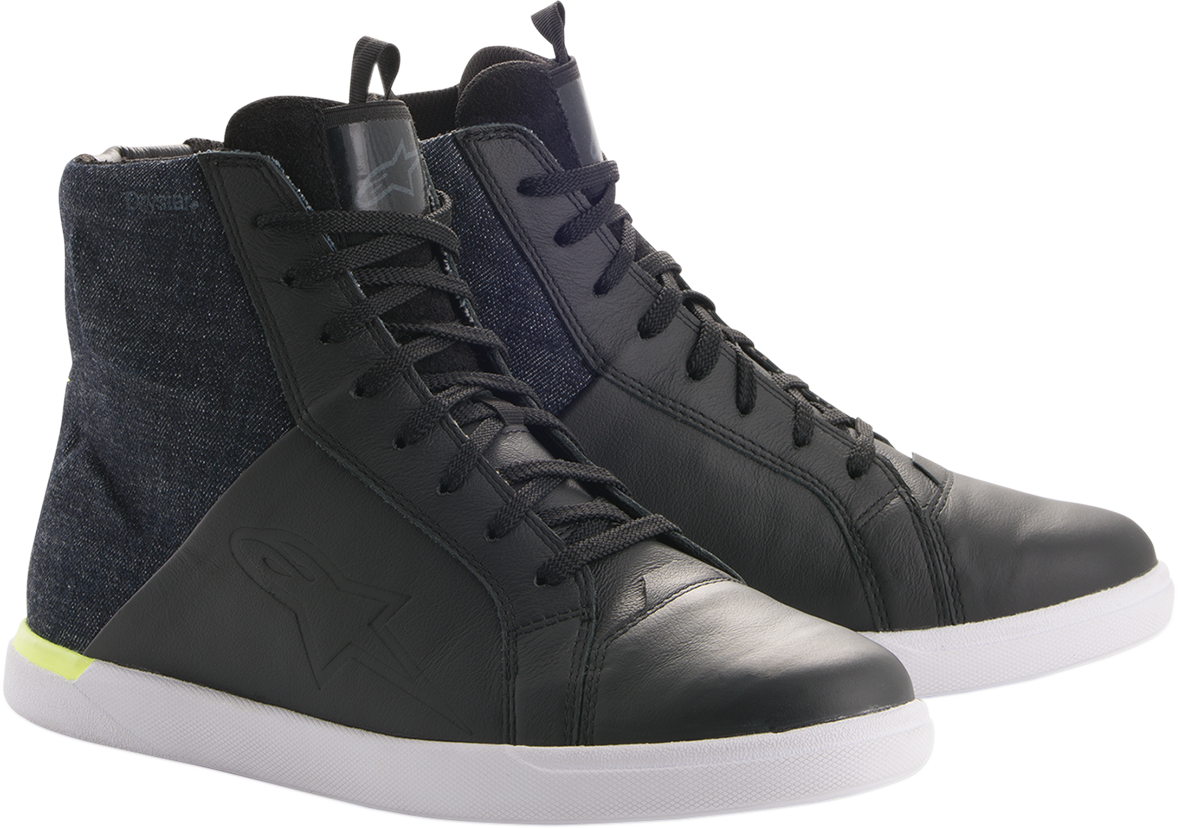 Lightweight, street-styled upper combining leather on the upper frontal area and suede on the back for comfort, durability and style, Denim version combines leather on the upper frontal area with denim at the back, Shoe tongue is leather for enhanced comfort, feel and style, Leather eyelets for durability and style, Traditional lace closure system for an easy, secure and comfortable fit, Silicon stretch fabric lace pocket at the top of the shoe tongue for tucking extra lace length inside so the lace cannot tangle on vehicle controls, Drystar® membrane layer between the shoe upper and lining for all-weather performance, Dual-density ankle protectors between the shoe outer layer and padded inner lining for strategic impact resistance and flexibility, Embossed areas highlight the impact-resistant areas for an aggressive, dynamic street look, Padding on tongue and heel areas for comfort and fit around the ankle and instep, Internal toe box and heel counter reinforcements layered under the shoe upper layer for a more ergonomic design, Sole design with rubber compound cup sole that is molded to the shoe upper for stability, grip, support and walking comfort