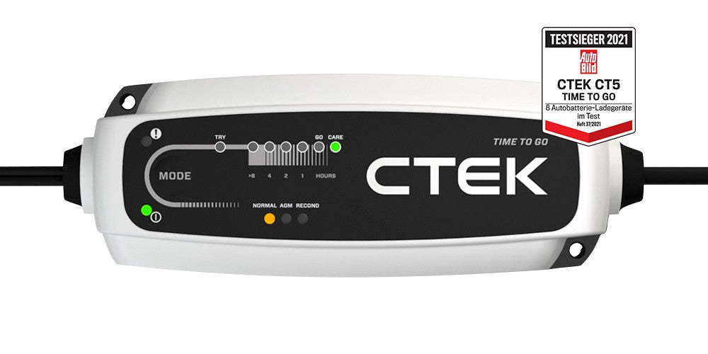 The groundbreaking CT5 TIME TO GO (part #40-255) battery charger and maintainer is a world first because it answers the question ‘When will my battery be fully charged?’