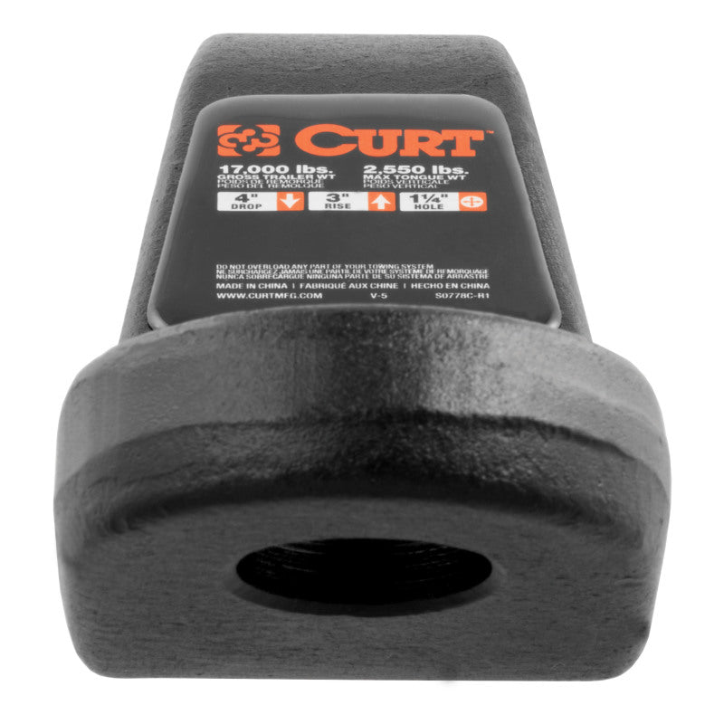 CURT 45341 Forged Trailer Hitch Ball Mount, Fits 2-Inch Receiver, 17,000 lbs. GTW, 1-1/4-Inch Ball Hole, 4-Inch Drop, 3-Inch Rise