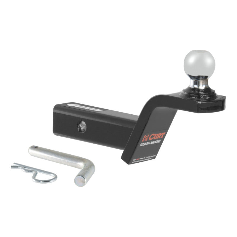 Arm yourself with confidence with a CURT Fusion ball mount. Much like our loaded ball mounts, CURT Fusion mounts come with a trailer ball pre-attached to the mounting platform to provide a ready-to-tow solution right out the package. Unlike a loaded ball mount, however, a Fusion ball mount features a trailer ball that is permanently fixed to the shank structure, making it stronger than a traditional non-welded ball mount. With their fixed tow ball, Fusion ball mounts are also very similar to our Euro Mount ball mounts. Besides increased strength, one advantage of a permanently attached trailer ball is that it can never be loosened or stolen from your vehicle. CURT Fusion ball mounts come with 2" x 2" shanks and include a pin and clip with each unit. This particular Fusion mount features a gross trailer weight capacity of 5,000 lbs. and a tongue weight rating of 500 lbs. It measures 8-1/8" long, has 2" of rise and comes with a 1-7/8" diameter trailer ball. CURT Fusion ball mounts are great for towing most standard size trailers, including utility trailers, livestock trailers, boat trailers and campers (NOTE: Never exceed the lowest weight capacity of any towing component; i.e. the vehicle, hitch, trailer, etc). Each unit is robotically welded to ensure accurate, consistent cuts and clean, strong weld lines. Once welded, these ball mounts undergo a cleaning process that creates a flawless surface for the application of our highly durable gloss black powder coat finish for long-lasting resistance to corrosion and chipping.