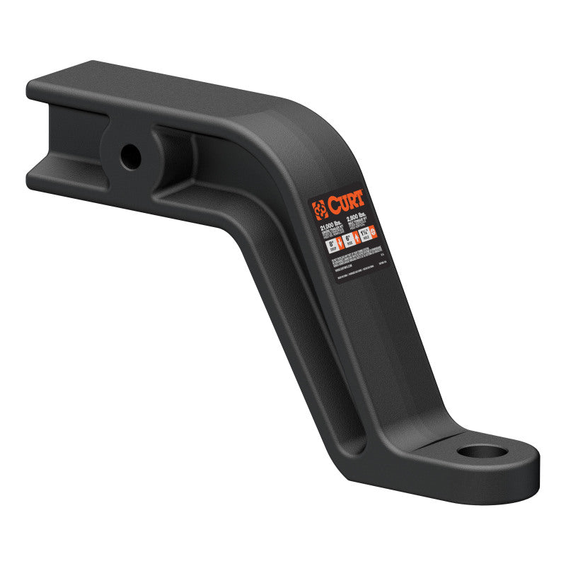 The CURT Industrial Duty ball mount features a 3" x 3" shank to fit heavy-duty 3" trailer hitches. The solid, forged steel construction and I-beam shape supply the necessary strength to complement these larger trailer hitches, and the ball mount has a highly durable carbide powder coat finish for long-lasting rust resistance. To ensure maximum towing power, this ball mount is rated for 21,000 lbs. GTW and 2,800 lbs. TW. The 21K GTW rating is fully tested to at our Detroit engineering facility. This ball mount also offers a rise of 6" and drop of 8" to accommodate larger, lifted pickup trucks, allowing for level towing of the trailer. It also has a 1-1/4" trailer ball hole to accept a heavy-duty trailer ball.