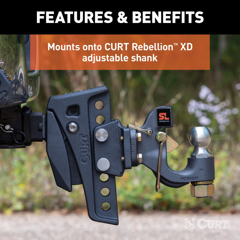 This accessory for the Rebellion XD ball mount features standard pintle hole spacing to accept any CURT plate-mount pintle hitch. The holes are spaced 3-5/16-inch wide by 1-3/4-inch high. This pintle mount attachment also features an integrated rubber dampener to compliment the Rebellion XD ball mount's resistance to jerking, jarring, vibrations and noise. The CURT Rebellion XD adjustable cushion hitch ball mount upgrades your towing system with a smoother ride, greater control and enhanced longevity, all while providing exceptional towing power with virtually no need for maintenance. It is unlike any other ball mount because it operates using ShockDrop technology. At the core of this heavy-duty ball hitch is a cushion isolator that resists jerking, jarring, bumps, vibrations, chucking and rattling noise at the coupling point. Unlike a cushion hitch or torsion hitch that uses airbags or bearings, ShockDrop offers extended resistance to wear without the need for maintenance. The result is a more comfortable drive, increased driver control and better management of the vehicle-trailer combination in events of sudden braking. The adaptive, suspension mechanism and lightweight design of this cushion hitch help minimize stress on your vehicle and its suspension and braking systems.