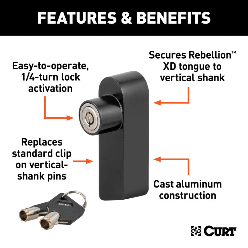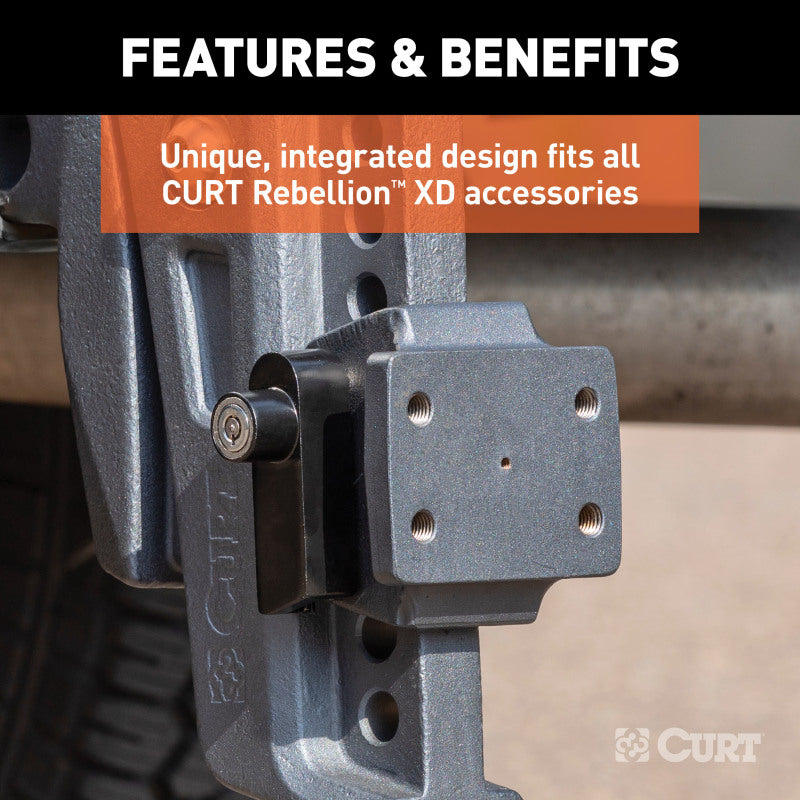 This Rebellion XD ball mount tongue lock enhances the security of your hitch setup. It is made from cast aluminum and mounts over the top of the vertical-shank attachment pins for a unique, integrated design. The lock has 1/4-turn lock activation and comes with two keys. The Rebellion XD adjustable ball mount is a leap forward in cushion hitch technology. It provides more control, confidence and a more comfortable ride, all while protecting your towing system from jerking, jarring, rattling and trailer sway. The Rebellion XD is not included in this package and must be purchased separately.