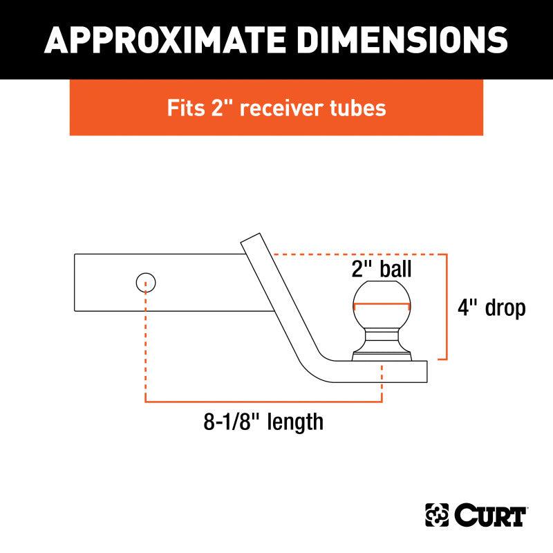 CURT 45142 Trailer Hitch Ball Mount with 2-Inch Trailer Ball & Hitch Lock, Fits 2-Inch Receiver, 7,500 lbs. GTW, 4-Inch Drop