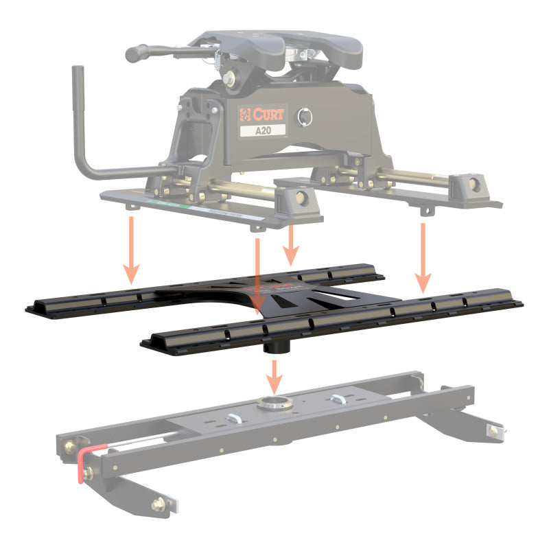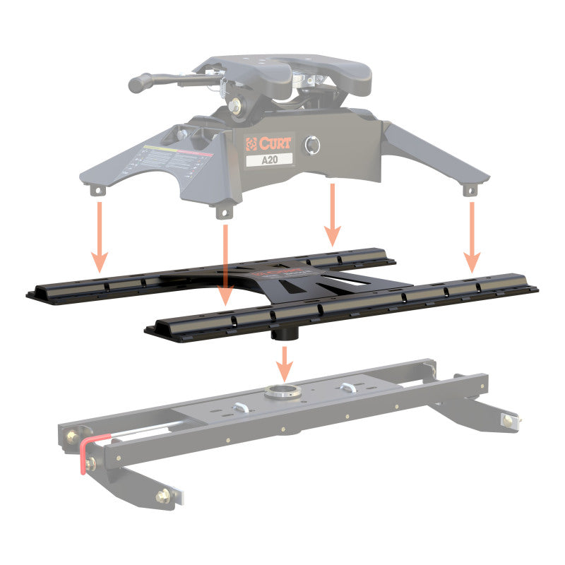 CURT 16210 X5 Gooseneck to 5th Wheel Adapter for Double Lock Gooseneck Hitches, Industry-Standard 5th Wheel Rails, 20,000 lbs.
