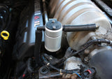 During the process of venting crankcase pressure back through your intake track, large amounts of oil, in the form of vapors can gather/accumulate in your intake tube, intake manifold runners and even dilute your gas, lowering its octane level. This happens on all engines and is even worse with forced inducted vehicles (supercharged and turbocharged) as crankcase pressures are increased. To combat this, we have developed an oil separator of our own design. Milled from solid billet aluminum this is a rock-solid piece. It has a knurled tank base for easy removal to drain the spent oil and an O-ring seal to prevent any leaks.