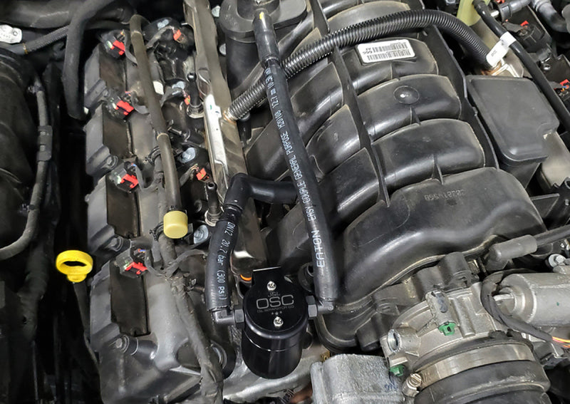 During the process of venting crankcase pressure back through your intake track, large amounts of oil, in the form of vapors can gather/accumulate in your intake tube, intake manifold runners and even dilute your gas, lowering its octane level. This happens on all engines and is even worse with forced inducted vehicles (supercharged and turbocharged) as crankcase pressures are increased. To combat this, we have developed an oil separator of our own design. Milled from solid billet aluminum this is a rock-solid piece. It has a knurled tank base for easy removal to drain the spent oil and an O-ring seal to prevent any leaks.