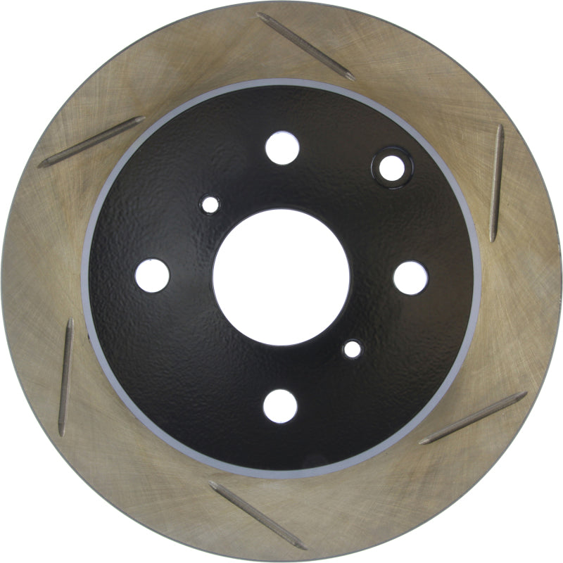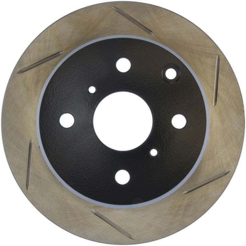 StopTech Slotted Sport Rotors are 1-piece direct replacement brake discs for factory brake systems and stock calipers that look great behind your wheels – and offer significantly improved braking performance. The unique slotting aids with heat and brake dust dispersal, prevents glazing of the pads, adds bite and improves wet and dry braking performance. Built to last, the black e-coating provides protection from corrosion and the high carbon metallurgy (in most applications) offers quieter operation, better crack resistance and increased performance.