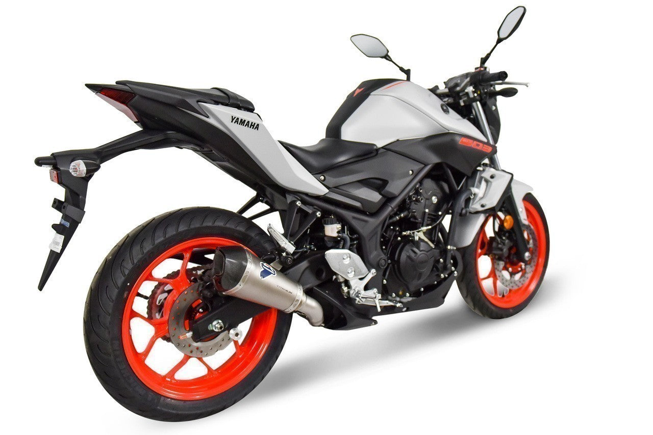 Ignite your Yamaha R3/MT03 with the Termignoni SO-01 Titanium Slip-On! Unlock hidden power, captivating sound, and head-turning aesthetics. Lightweight, performance-driven, and legal - unleash the beast within your Yamaha.