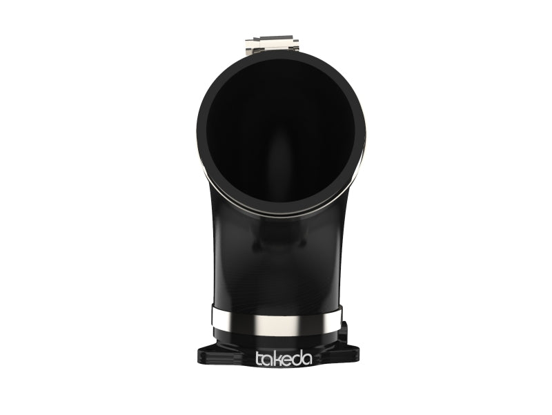 This turbo inlet is the perfect addition to the Takeda intake. It removes the air flow restriction of the factory turbo inlet and guarantees the maximum air flow to the turbo for maximum power. It provides a smooth transition for the air from the Takeda air intake tube to the turbo with the minimum restriction. Precisely CNC machined out of 6061-T6 billet aluminum, the adapter mounts directly onto the turbo and guides the increased air flow from the Takeda intake into the turbo. It is black anodized for durability and a stealthy appearance. This turbo inlet utilizes a flexible silicone coupling that is reinforced with three layers of polyester material, making it resistant to wear and deterioration. The silicone coupling mates directly to the aluminum turbo adapter and the Takeda air intake tube. All necessary clamps are provided. All necessary clamps and hardware are provided for a fast and easy installation. The factory harness bracket mounts directly onto the aluminum adapter for perfect fitment. This item will only fit with Takeda air intake systems P/N: 56-10021D , 56-10021R, 56-70021D and 56-70021R . It will NOT fit with the factory air intake system. For use with factory air intake system, see part number 59-20001.