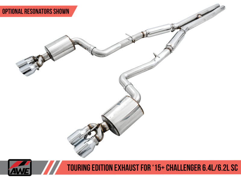 AWE Tuning 2015+ Dodge Challenger 6.4L/6.2L SC Resonated Touring Edition Exhaust - Quad Silver Tips