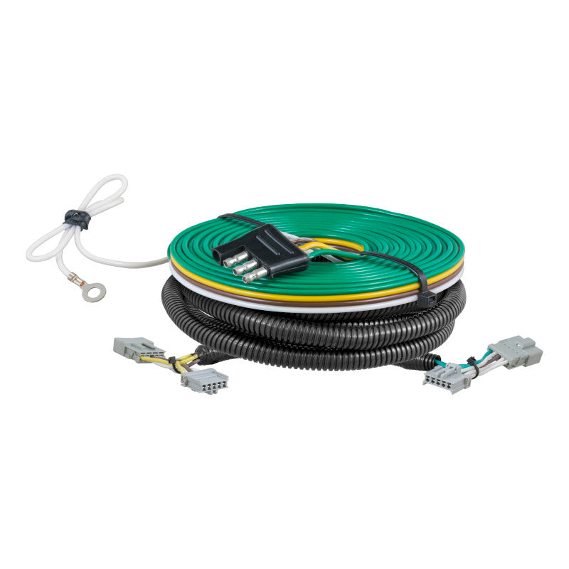 Towing your vehicle behind your RV is a great way to experience more of the adventure on your cross-country excursions. Whether you're towing a compact car or a full-size truck, CURT has the perfect solution to help you Bring It! CURT towed-vehicle RV harnesses are a vehicle-specific, plug-and-play solution to wiring your vehicle for dinghy towing. They use original-equipment-compatible connectors to plug into your vehicle's wiring system without any cutting, splicing or soldering required. They provide a standard 4-way flat connector to plug into the RV socket and synchronize the vehicle's tail lights, turn signals and brake lights with the RV's. Because each towed-vehicle RV harness has a vehicle-specific design, installation is fast and easy. This particular RV dinghy towing wiring harness is designed for specific years of the Honda Element. CURT RV harnesses are also built to provide long-lasting operation. They feature integrated block diodes that protect the vehicle's circuits from the RV signals. They isolate the sensitive vehicle electronics, keeping them from overheating and short circuiting. Every CURT towed-vehicle RV harness comes ready to install with all necessary hardware included. They also come with a 4-way flat extension to provide plenty of length to plug into the RV socket, as well as a connector mounting bracket to mount the connector on the vehicle.