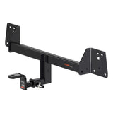 Connect to your lifestyle with a custom hitch receiver from CURT. All of our custom hitches are designed for a vehicle-specific fit, manufactured with pride, finished for industry-leading rust resistance and tested to rigorous SAE J684 standards for safety. This class 1 trailer hitch and ball mount combination is designed for a custom fit on select years of the Toyota C-HR (see application info to verify fitment). The hitch integrates with the vehicle's frame and provides a useful and dependable 1-1/4" x 1-1/4" receiver. The receiver is perfect for attaching the included ball mount and towing a small trailer, or for adding cargo space with a hitch-mounted cargo carrier, bike rack or other accessory. This particular class 1 hitch is rated for 2,000 pounds gross trailer weight and 200 pounds tongue weight (never exceed the lowest-rated towing component). The ball mount included with this trailer hitch quickly and easily installs into the hitch receiver and has a 3/4" trailer ball hole (trailer ball not included). It can be mounted in the rise or drop position to promote level towing. Like all CURT custom hitches, this class 1 hitch is protected with our co-cured finishing process. It is descaled for a smooth surface, immersed in liquid Bonderite for rust resistance inside and out, covered with a durable black powder coat and finally co-cured for an industry-leading rust, chip and UV-resistant shield. No matter where you're headed or which season of the year youre towing in, this CURT hitch is equipped for long-lasting resilience to the elements. It features an open-back receiver for easy cleaning, and it comes with all the hardware necessary for the installation.