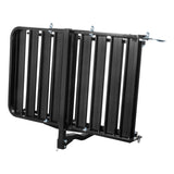The CURT aluminum trailer hitch cargo carrier with ramp provides an innovative solution for transporting a mobility scooter, push mower, snow blower or other large cargo. It features a unique double-folding ramp that folds in half vertically during travel to greatly reduce wind resistance and drag. The ramp also folds out to allow for easy loading of a power scooter chair or other cargo, and it folds into the cargo basket itself for easy storage and portability when not in use. This scooter hitch carrier is rated for 500 pounds, featuring a high-strength, welded aluminum tubular frame. The basket bolts together quickly and easily with eight bolts, and it comes with a standard 2-inch shank to fit most class 3, class 4 and class 5 hitches. For maximum safety while traveling, this trailer hitch cargo carrier with ramp features an anti-rattle threaded shank to deter vibrations and wobbling of the cargo. It is also equipped with built-in reflectors for increased visibility. When not in use, the CURT aluminum hitch carrier with ramp can be folded up with its folding shank, promoting safer parking and helping to eliminate obstructions. This hitch carrier basket is constructed from lightweight, highly corrosion-resistant aluminum and has a durable carbide black powder coat finish for extra protection against the elements. The cargo carrier measures 50 inches x 30-1/2 inches x 4 inches, and it comes with an anti-rattle hitch pin to readily install on the vehicle after assembly. It also features eye-bolts along the outer walls, providing convenient tiedown points for fastening cargo ratchet straps, rope, a cargo net or bungees.