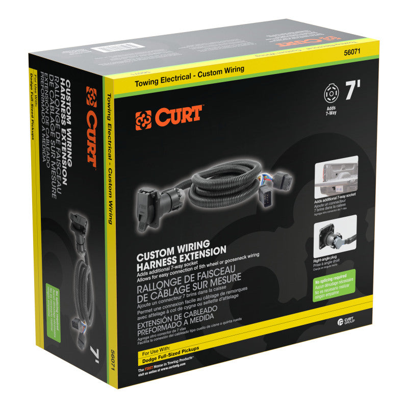 Curt 95-10 Dodge Ram 2500 7ft Custom Wiring Harness Extension (Adds 7-Way RV Blade to Truck Bed)