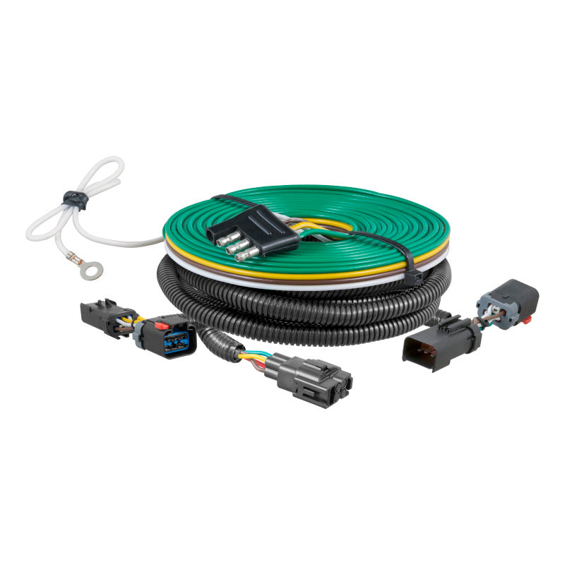 Towing your vehicle behind your RV is a great way to experience more of the adventure on your cross-country excursions. Whether you're towing a compact car or a full-size truck, CURT has the perfect solution to help you Bring It! CURT towed-vehicle RV harnesses are a vehicle-specific, plug-and-play solution to wiring your vehicle for dinghy towing. They use original-equipment-compatible connectors to plug into your vehicle's wiring system without any cutting, splicing or soldering required. They provide a standard 4-way flat connector to plug into the RV socket and synchronize the vehicle's tail lights, turn signals and brake lights with the RV's. Because each towed-vehicle RV harness has a vehicle-specific design, installation is fast and easy. This particular RV dinghy towing wiring harness is designed for specific years of the Jeep Grand Cherokee. CURT RV harnesses are also built to provide long-lasting operation. They feature integrated block diodes that protect the vehicle's circuits from the RV signals. They isolate the sensitive vehicle electronics, keeping them from overheating and short circuiting. Every CURT towed-vehicle RV harness comes ready to install with all necessary hardware included. They also come with a 4-way flat extension to provide plenty of length to plug into the RV socket, as well as a connector mounting bracket to mount the connector on the vehicle.