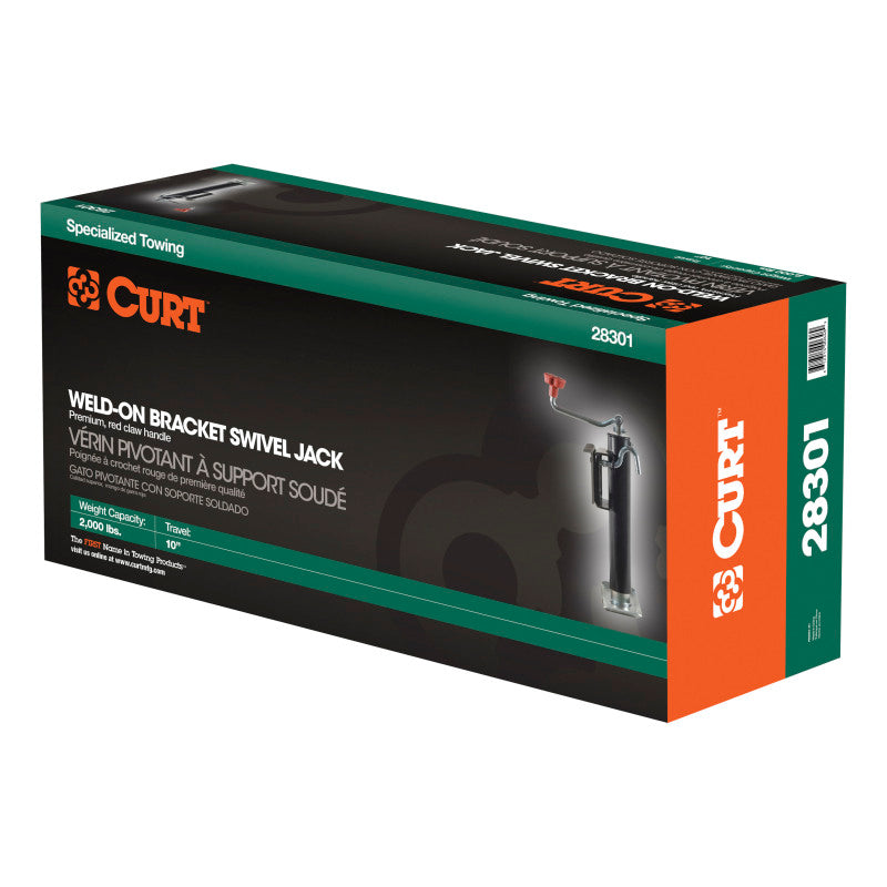 CURT 28301 Weld-On Bracket-Style Swivel Trailer Jack, 2,000 lbs., 10-1/2 Inches Vertical Travel