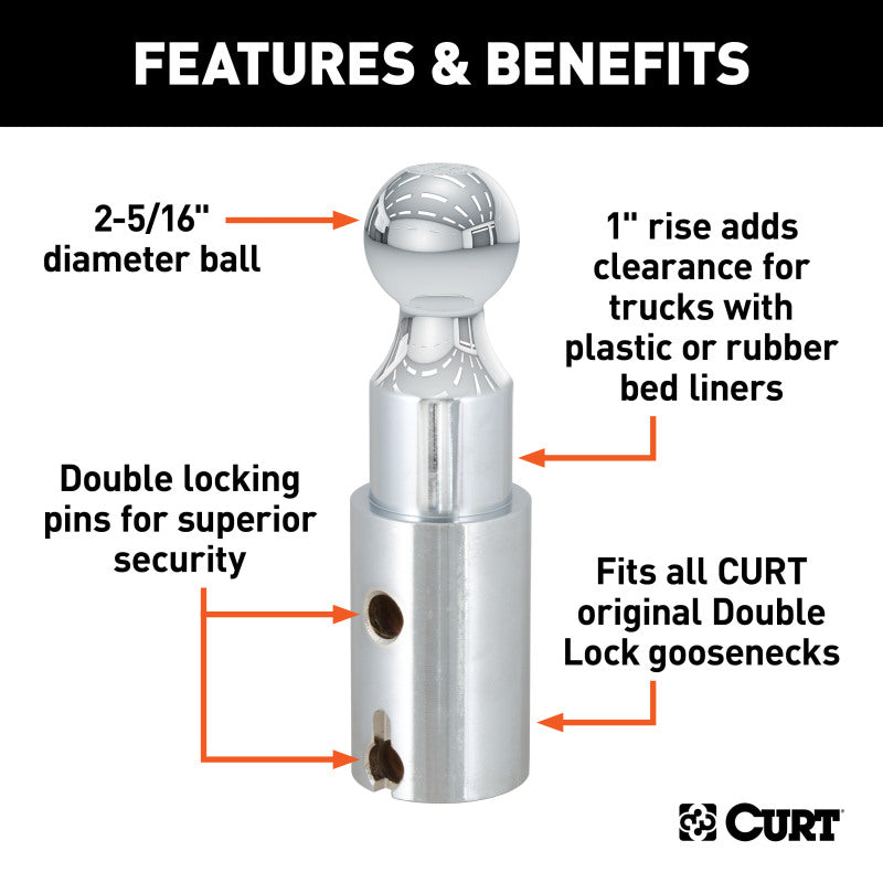 Curt Double Lock 2-5/16in Riser Gooseneck Ball (1in Rise for Bed Liner)