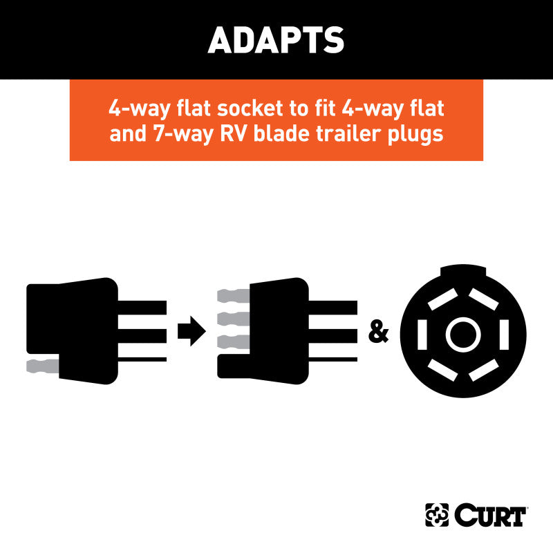 Curt Dual-Output Electrical Adapter (Adds 7-Way RV Blade to 4-Way Flat)