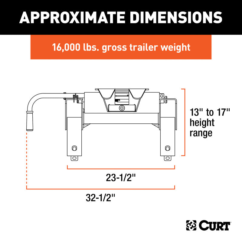 Limited lifetime warranty (one-year finish, one-year parts) CURT 16115 E16 5th Wheel Hitch, 16,000 lbs.