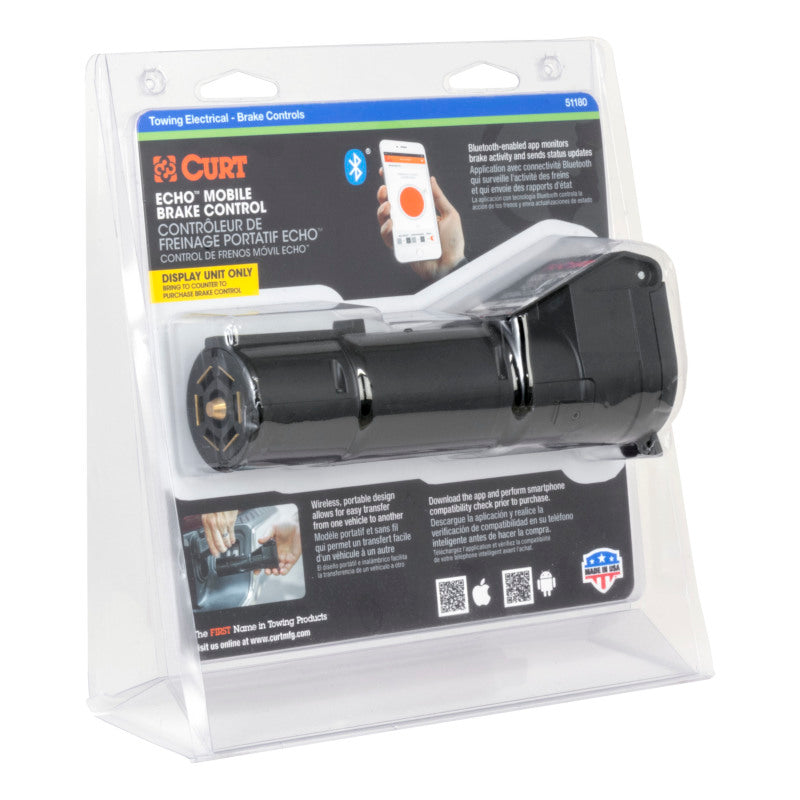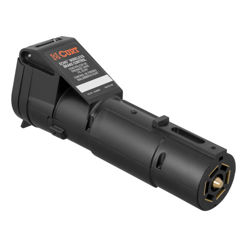 The CURT Echo mobile trailer brake controller is a Bluetooth-enabled device that wirelessly connects to your smartphone and allows you to control and monitor all trailer brake activity right from your own device. It features a simple, plug-and-play installation on your vehicle, a portable design to easily switch between vehicle-trailer combinations and a highly durable construction to outlast the elements. The Echo brake controller brings your towing experience into the modern age. Powered by Bluetooth, it wirelessly connects to your smartphone without any extra wiring harnesses or modules required. Simply download the Smart Control app on your Apple iOS or Android OS device, plug the Echo into your vehicle and you're ready to start towing. The app allows you to create multiple vehicle-trailer profiles for different towing situations. Installing the Echo trailer brake controller is truly a plug-and-play experience. It is designed to insert in between the vehicle-trailer wiring connection and is compatible with any industry-standard 7-way RV blade plug. This design also allows the Echo to be easily transferred between vehicles, making it perfect for fleet vehicles or multiple-vehicle owners. The Echo mobile trailer brake controller is built to withstand the outdoor elements, whether you're towing through rain, snow or sunshine. It features a potted enclosure. This means the interior of the Echo is filled with an epoxy resin that covers the internal electronics and seals them off from dirt and moisture. This promotes long-lasting durability and also helps reduce vibration. To further enhance the connection, the connector port of the Echo is equipped with a locking tab to connect to the 7-way vehicle socket. The CURT Echo mobile brake controller operates with a tri-axis circuit for smooth stops going up or down a hill, and it is able to operate up to two to four trailer brakes at a time (one to two axles). It is also compatible with cruise control and ABS brakes.